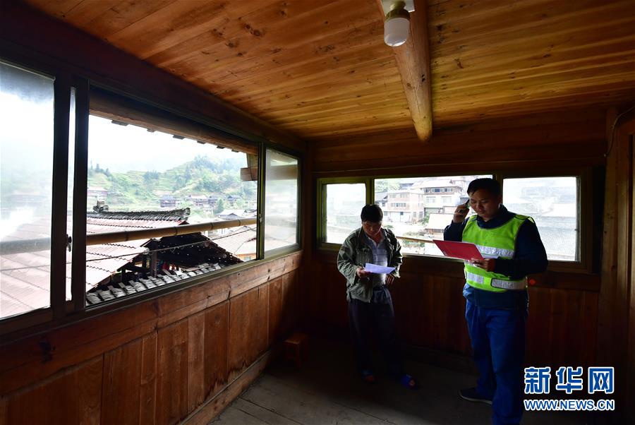 李義成(右)在走訪貧困戶(4月20日攝)。新華社記者黃孝邦攝