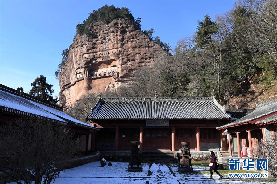 12月26日,游客在麥積山石窟參觀(guān)游覽。新華社記者馬寧攝