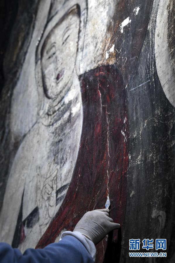 4月以來(lái),寧夏固原市原州區(qū)須彌山石窟文物管理所組織專(zhuān)業(yè)技術(shù)人員對(duì)現(xiàn)存所有壁畫(huà)進(jìn)行修復(fù),這也是自清代以來(lái)首次對(duì)須彌山石窟壁畫(huà)開(kāi)展搶救性修復(fù)。