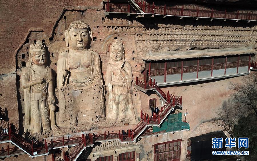 12月26日無(wú)人機(jī)拍攝的麥積山石窟。新華社記者馬寧攝