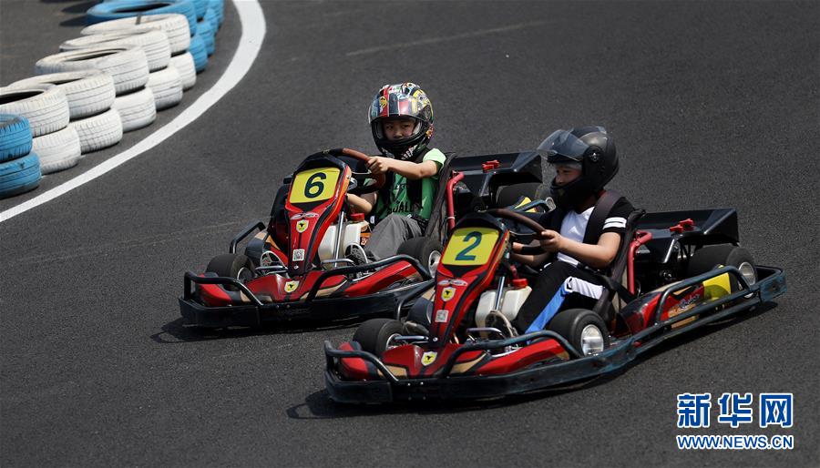 5月2日,游客在遼寧省鞍山市祥和度假莊園里開(kāi)卡丁車?!拔逡弧奔偃掌陂g,人們以多種方式放松心情、享受假日。新華社記者姚劍鋒攝