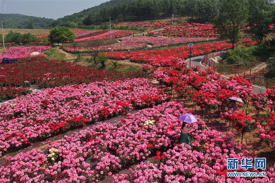 5月2日,游人在湖北省荊門市圣境花谷游玩(無人機照片)。“五一”假日期間,人們以多種方式放松心情、享受假日。新華社發(fā)(彭琦攝)