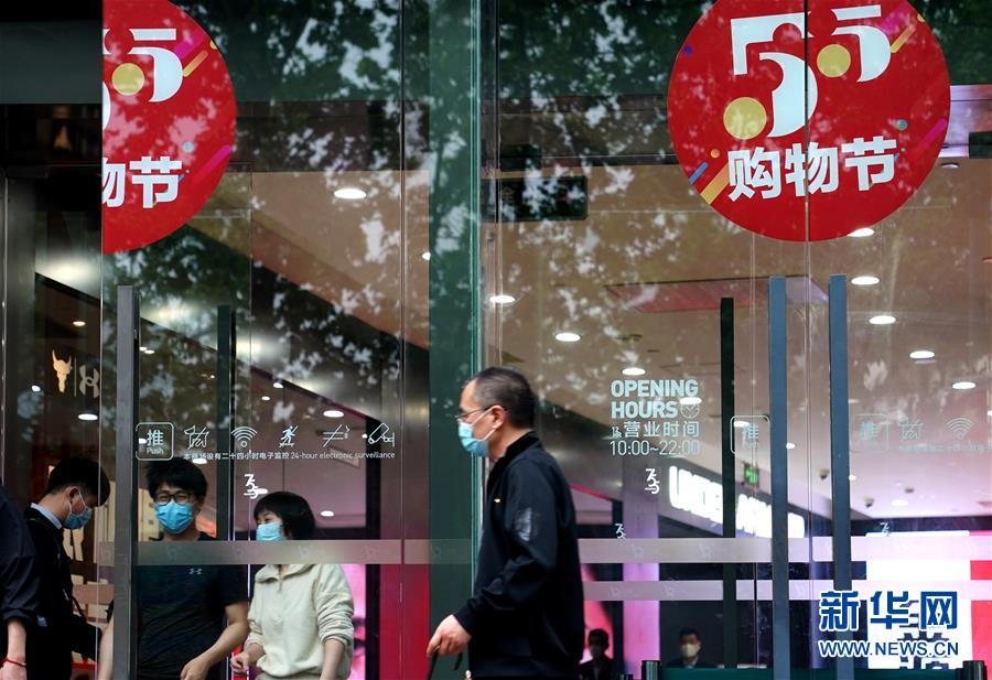 上?;春B芬患疑虉龅摹拔逦遒徫锕?jié)”標(biāo)識(5月5日攝)。5月4日晚,上海首次啟動大規(guī)模商業(yè)促銷活動“五五購物節(jié)”,多家在線新經(jīng)濟(jì)企業(yè)參與,通過線上流量優(yōu)勢反哺線下賣場,實(shí)現(xiàn)電商與實(shí)體零售融合互動,激活消費(fèi)潛力、驅(qū)動消費(fèi)復(fù)蘇。據(jù)“上海發(fā)布”的消息,截至5日14時12分,“五五購物節(jié)”上海地區(qū)消費(fèi)支付總額已超100億元。新華社記者劉穎攝