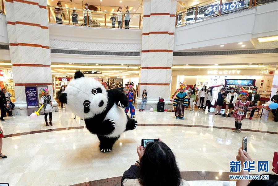 5月5日,大熊貓人偶在上海環(huán)球港商場為“五五購物節(jié)”營造氣氛。5月4日晚,上海首次啟動大規(guī)模商業(yè)促銷活動“五五購物節(jié)”,多家在線新經濟企業(yè)參與,通過線上流量優(yōu)勢反哺線下賣場,實現電商與實體零售融合互動,激活消費潛力、驅動消費復蘇。據“上海發(fā)布”的消息,截至5日14時12分,“五五購物節(jié)”上海地區(qū)消費支付總額已超100億元。新華社記者陳飛攝