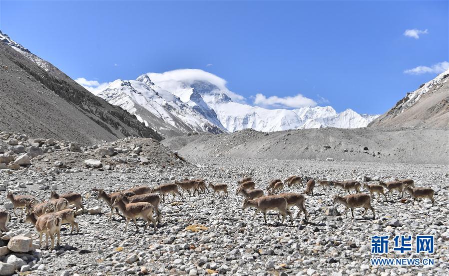 一群巖羊在珠峰大本營(yíng)附近覓食(5月8日攝)。當(dāng)日,一群巖羊在珠峰大本營(yíng)周圍覓食,黃嘴山鴉飛到巖羊身上停留,構(gòu)成一幅幅生動(dòng)有趣的雪域圖畫。新華社記者普布扎西攝