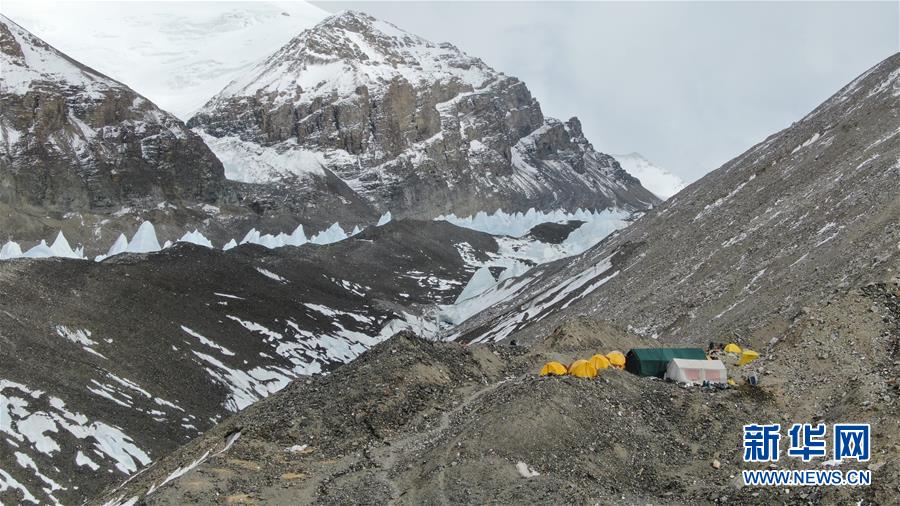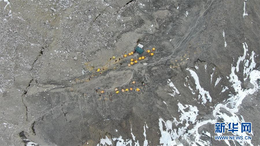 這是海拔5800米的過渡營地(5月8日攝,無人機(jī)照片)。珠峰過渡營地海拔5800米,是連接前進(jìn)營地和珠峰大本營的重要一站。登山愛好者從大本營徒步大約四個小時就能抵達(dá)過渡營地。此段路程亂石林立,同時也能欣賞壯美的冰川。新華社記者孫非攝