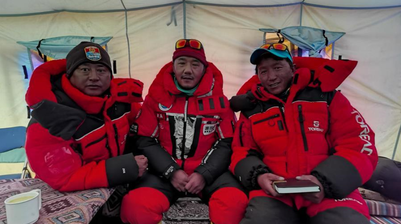 部分隊員在撤回大本營途中(5月9日攝)。 因天氣原因,2020珠峰高程測量登山隊將分兩批從海拔6500米的前進營地撤回大本營進行休整。修路隊和運輸隊繼續(xù)留在前進營地等待好天氣,以通過北坳冰壁,完成修路和運輸任務。根據(jù)研判,此次登頂測量時間將比原計劃推后。 新華社記者 孫非 攝