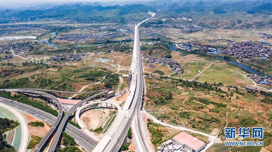 都安高速改擴(kuò)建路段的惠水特大橋與惠水樞紐(無人機(jī)照片,5月9日攝)。