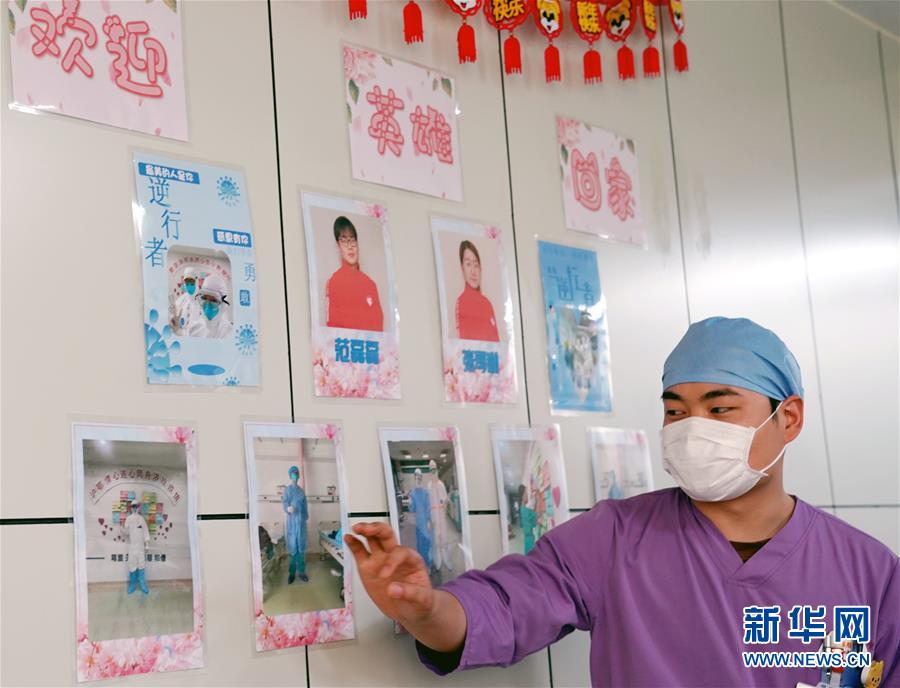 5月10日,上海市普陀區(qū)中心醫(yī)院急診重癥監(jiān)護室的護士范磊磊站在同事們制作的“榮譽榜”前。這是科室同事為了歡迎他和另一位援鄂護士平安歸來而準(zhǔn)備的“驚喜禮物”。新華社記者劉穎攝