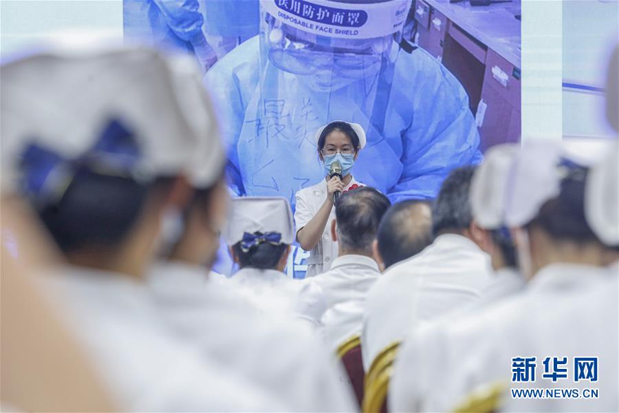 5月11日,援鄂醫(yī)療隊隊員代表在活動上分享戰(zhàn)“疫”故事。在國際護士節(jié)到來之際,北京大學(xué)人民醫(yī)院11日舉辦慶祝護士節(jié)暨優(yōu)秀集體和個人表彰活動,并邀請援鄂醫(yī)療隊護士代表分享戰(zhàn)“疫”故事。我國今年護士節(jié)的主題為“致敬護士隊伍,攜手戰(zhàn)勝疫情”。新華社記者張玉薇攝