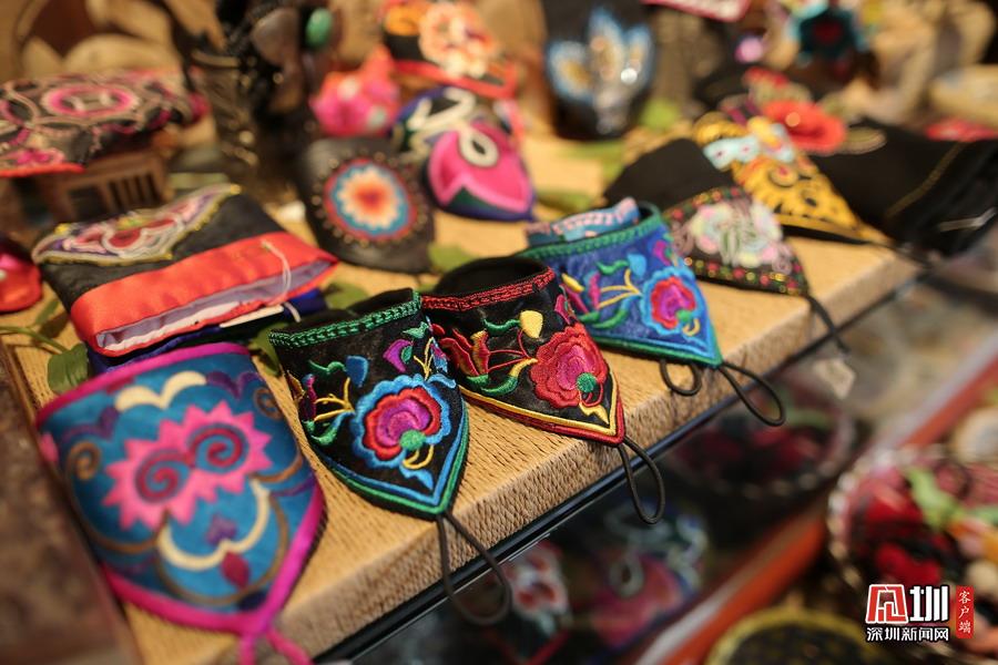 彝家公社內(nèi)陳列的彝族刺繡服飾。