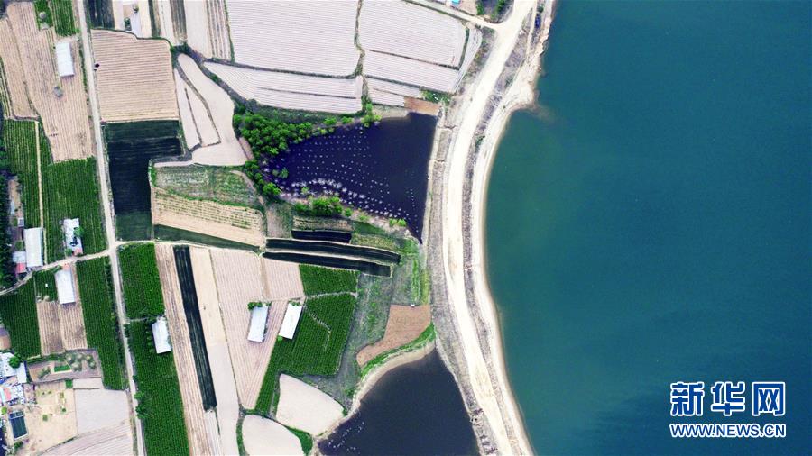 5月13日拍攝的青峰嶺水庫庫區(qū)景色(無人機照片)。新華社記者王凱攝