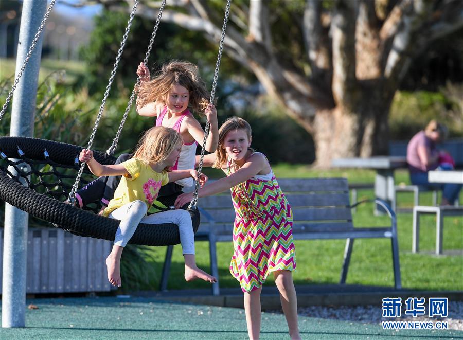 5月14日,孩子們?cè)谑锥蓟蒽`頓郊外公園的游樂場玩耍。當(dāng)天是新西蘭從新冠疫情防控響應(yīng)三級(jí)下調(diào)到二級(jí)的第一天,經(jīng)濟(jì)活動(dòng)全面重啟,公園等公共設(shè)施首次重新開放,中小學(xué)生將于5月18日全面返校復(fù)課。新華社記者郭磊攝