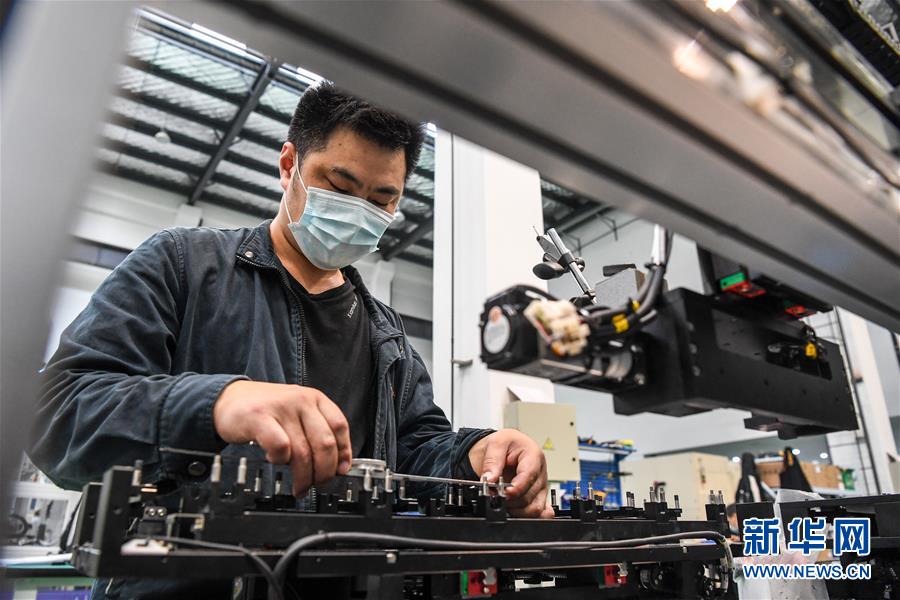 5月14日,工人在江蘇先河激光技術(shù)有限公司組裝調(diào)試全自動皮秒激光切割機(jī)。江蘇省宿遷市2016年初啟動建設(shè)宿遷激光產(chǎn)業(yè)園,目前,園區(qū)共有激光及相關(guān)配套企業(yè)50余家,涉及激光切割、激光打標(biāo)、激光醫(yī)療等。當(dāng)?shù)夭粩嗤晟茍@區(qū)配套設(shè)施,推動激光產(chǎn)業(yè)集聚,打造激光研發(fā)、裝備制造和加工應(yīng)用的完整產(chǎn)業(yè)鏈。新華社記者李博攝