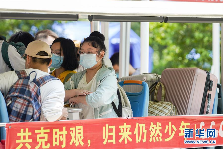 5月15日,在西南大學(xué)的返校學(xué)生報(bào)到點(diǎn),學(xué)生在校內(nèi)轉(zhuǎn)運(yùn)車上準(zhǔn)備前往宿舍。當(dāng)日,重慶西南大學(xué)迎來疫情以來首批返校大學(xué)生。據(jù)介紹,按照疫情防控的需要,重慶市高校2020年春季學(xué)期從5月11日起按照“一校一策”原則,實(shí)行錯峰錯時分批次有序開學(xué)復(fù)課。新華社記者劉潺攝