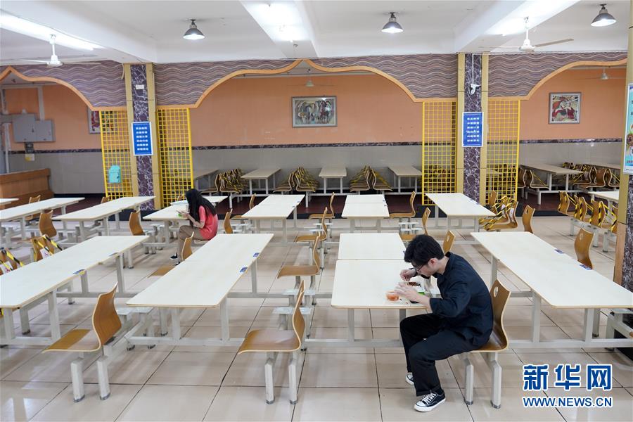 5月15日,在西南大學(xué)的一個學(xué)生食堂內(nèi),學(xué)生按照要求一人一桌吃午餐。當(dāng)日,重慶西南大學(xué)迎來疫情以來首批返校大學(xué)生。據(jù)介紹,按照疫情防控的需要,重慶市高校2020年春季學(xué)期從5月11日起按照“一校一策”原則,實(shí)行錯峰錯時分批次有序開學(xué)復(fù)課。新華社記者劉潺攝