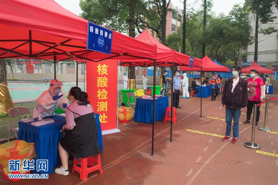 5月15日,在武漢東西湖區(qū)吳家山第一小學操場檢測點,工作人員對市民進行核酸檢測。近日,武漢將對全市市民有序開展核酸檢測,進一步摸清無癥狀感染者底數(shù),進而有效管控。新華社記者肖藝九攝