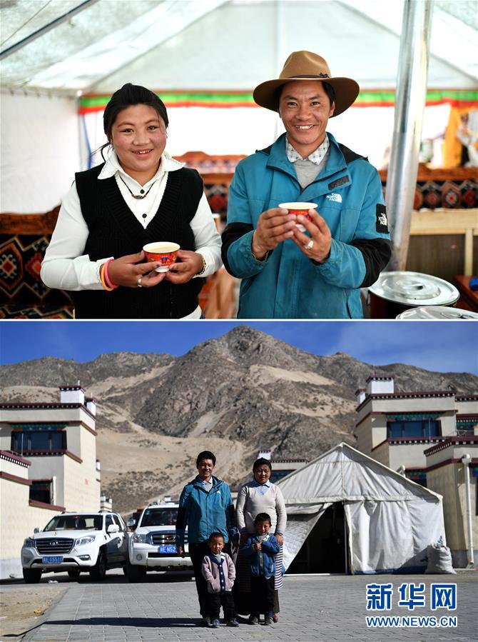 拼版照片上圖:在森布日極高海拔地區(qū)生態(tài)搬遷安置點(diǎn),格多(右)和妻子洛巴在展示自家打的酥油茶;下圖:在森布日極高海拔地區(qū)生態(tài)搬遷安置點(diǎn),格多(后左)和妻子洛巴及大兒子扎西尼瑪(前右)、小兒子普巴多杰在帳篷茶館前合影(照片均攝于4月15日)。格多的老家在西藏那曲市安多縣色務(wù)鄉(xiāng),一個(gè)藏北偏遠(yuǎn)的牧區(qū)。2019年底,政府對(duì)平均海拔4500米以上的那曲市安多縣、雙湖縣進(jìn)行極高海拔地區(qū)生態(tài)搬遷。和格多一家一樣,安多縣、雙湖縣搬遷下來的4000余名群眾完成了人生的遷徙,開啟了更加美好的生活。黨的十八大以來,我們堅(jiān)持以人民為中心的發(fā)展思想,明確了到2020年我國(guó)現(xiàn)行標(biāo)準(zhǔn)下農(nóng)村貧困人口實(shí)現(xiàn)脫貧、貧困縣全部摘帽、解決區(qū)域性整體貧困的目標(biāo)任務(wù)。目前看,脫貧進(jìn)度符合預(yù)期,成就舉世矚目。這些成績(jī)的取得,凝聚了全黨全國(guó)各族人民智慧和心血,是廣大干部群眾扎扎實(shí)實(shí)干出來的。脫貧摘帽不是終點(diǎn),而是新生活、新奮斗的起點(diǎn)。新華社記者詹彥攝