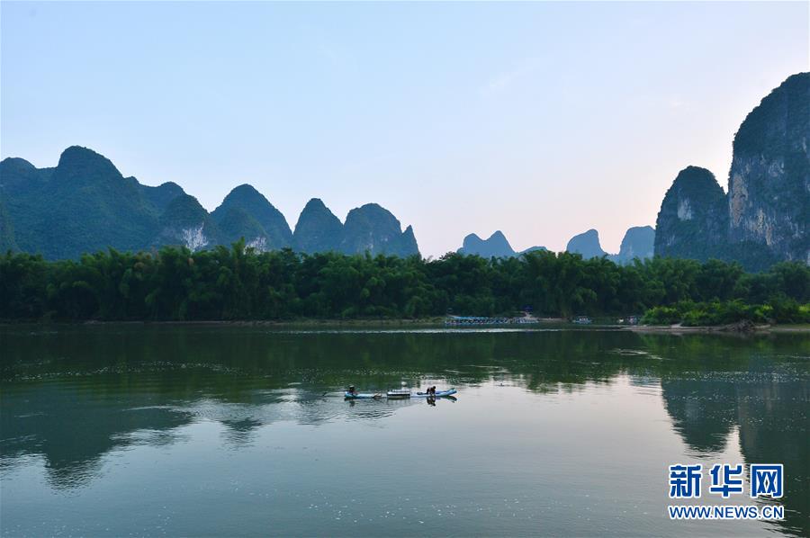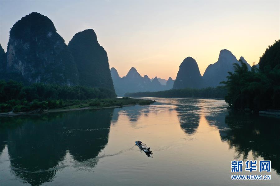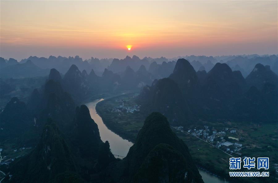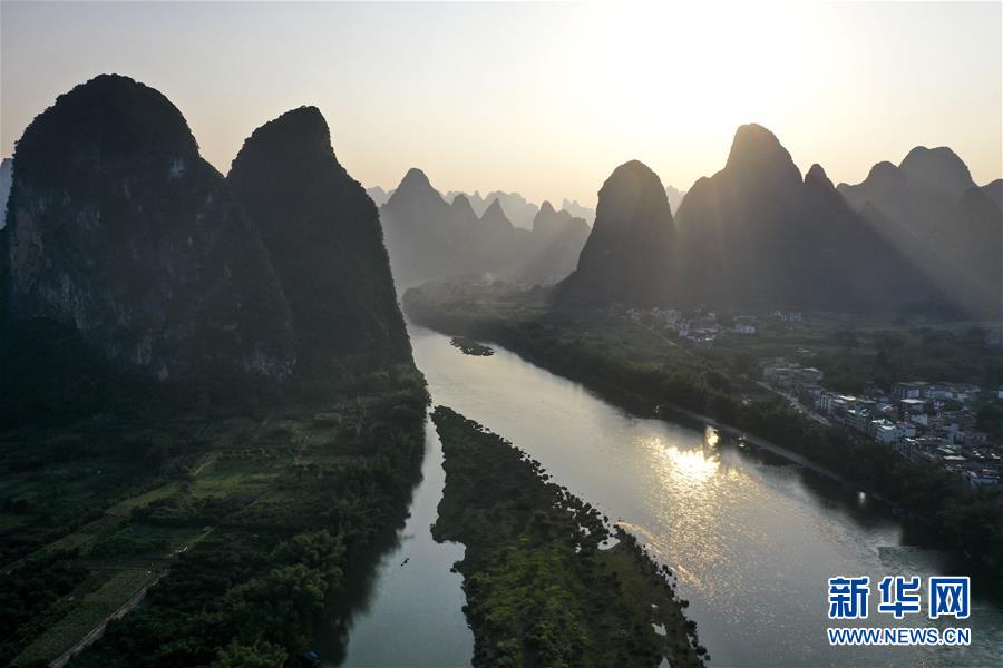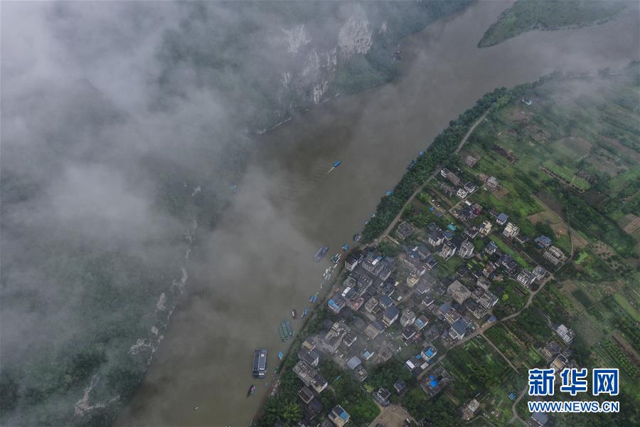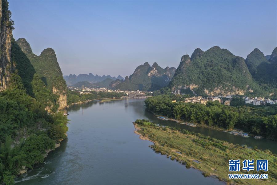 這是在廣西桂林市陽朔縣興坪鎮(zhèn)拍攝的山水風(fēng)光(5月21日攝,無人機(jī)全景照片)?!吧n蒼森八桂,茲地在湘南。江作青羅帶,山如碧玉篸……”一千多年前,唐朝詩人韓愈寫盡桂林山水之美。初夏時(shí)節(jié),在廣西桂林市陽朔縣興坪鎮(zhèn),藍(lán)天白云下,煙雨朦朧中,桂林山水盡顯秀美。新華社記者周華攝
