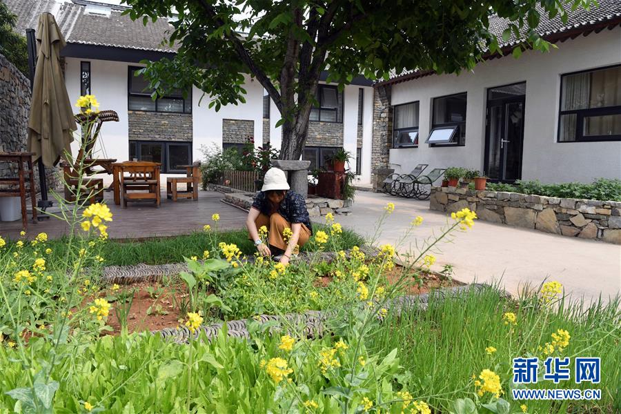 5月21日,在天津市薊州區(qū)漁陽(yáng)鎮(zhèn)西井峪村的一處農(nóng)家院,游客采摘新鮮蔬菜。新華社記者 馬平 攝