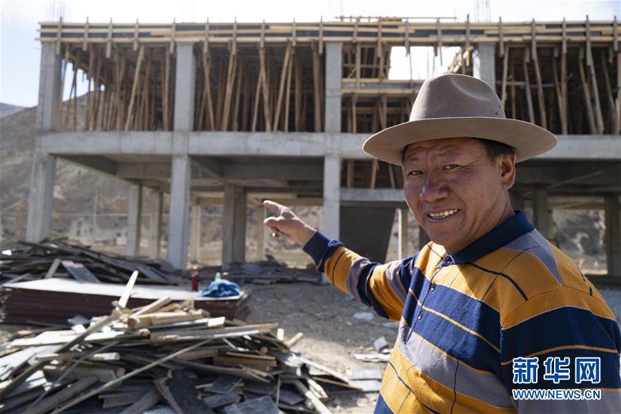 “牛頭旅館”老板多吉在新蓋的旅館前監(jiān)工(5月17日攝)。新華社記者普布扎西攝