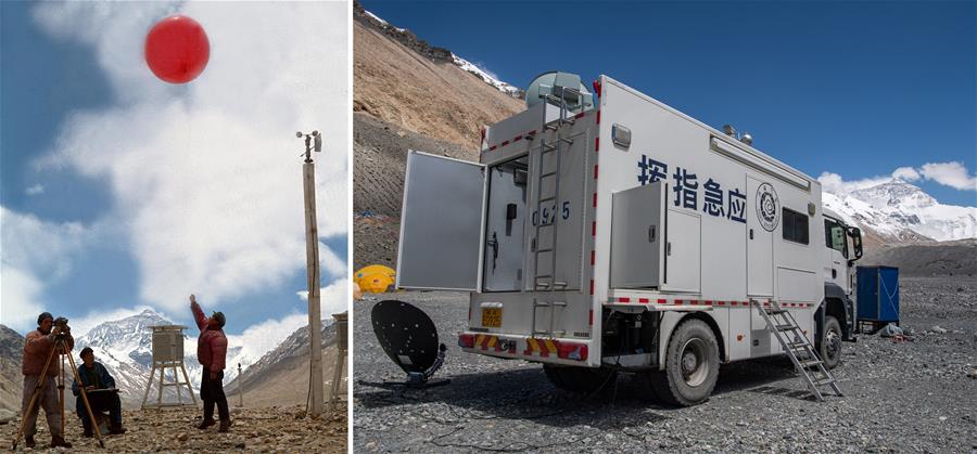 拼版照片:左圖為1975年6月9日,我國氣象工作者在珠穆朗瑪峰腳下的高山氣象站收集氣象資料。新華社記者程至善攝右圖為2020年5月25日拍攝的珠峰大本營氣象應(yīng)急保障車,西藏自治區(qū)氣象局氣象專家在這里與后方氣象專家進(jìn)行天氣會(huì)商。新華社記者普布扎西攝