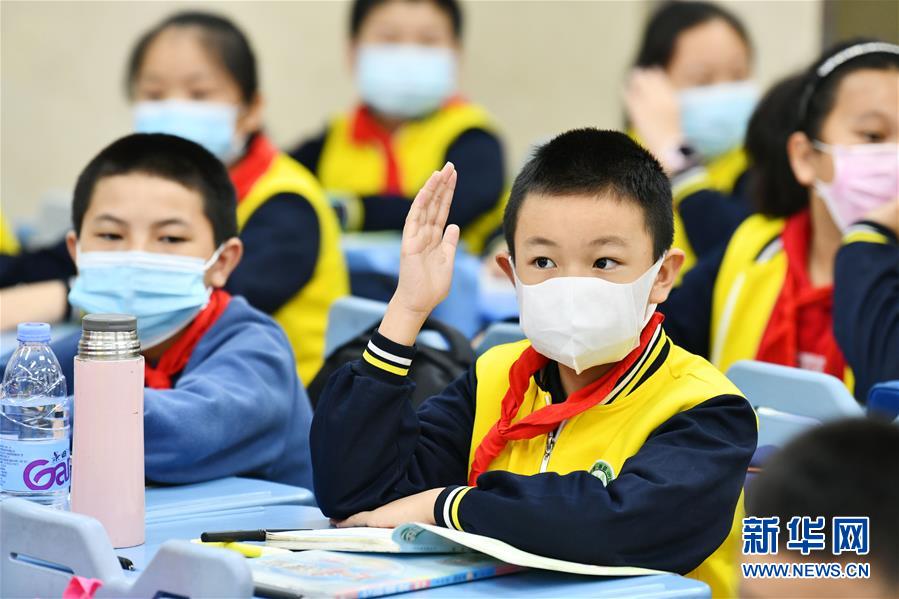5月25日,貴陽市南明區(qū)苗苗實(shí)驗(yàn)學(xué)校的學(xué)生在課堂上舉手回答問題。新華社記者楊文斌攝