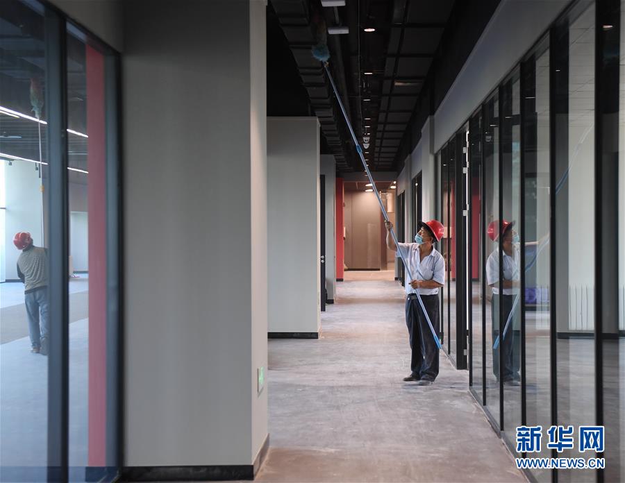 5月27日,保潔人員在“冰壇”內(nèi)部進(jìn)行保潔工作。新華社記者張晨霖?cái)z
