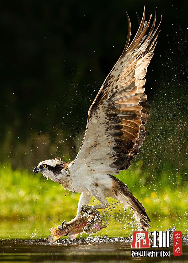 2020年5月28日報(bào)道(具體拍攝時(shí)間不詳),54歲的Gladys Klip來自荷蘭,是一名銀行助理,他在蘇格蘭高地拍攝到魚鷹捕魚的精彩照片。畫面中,魚鷹快速俯沖而下,掠過水面,鷹爪隨即從水中成功抓起一條魚兒,濺起水花,整個(gè)過程精彩詮釋快準(zhǔn)狠。Gladys Klip稱他在早晨5點(diǎn)的時(shí)候已經(jīng)在等候拍攝。