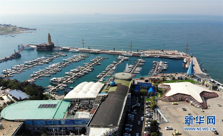 中華人民共和國水準零點景區(qū)所在的山東省青島市市南區(qū)東海中路30號銀海大世界(5月28日攝,無人機照片)。新華社記者李紫恒攝