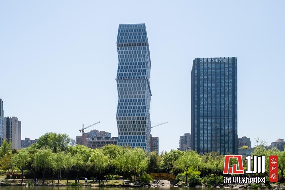 2018年4月10日,上海,長(zhǎng)寧區(qū)古北商務(wù)區(qū)一新建超高層建筑造型頗為獨(dú)特,起伏收分層疊向上的體量和節(jié)節(jié)高的竹子頗為神似。從各個(gè)角度看,大樓的外邊都呈折線,有附近居民戲稱這幢大樓為“扭腰大樓”。