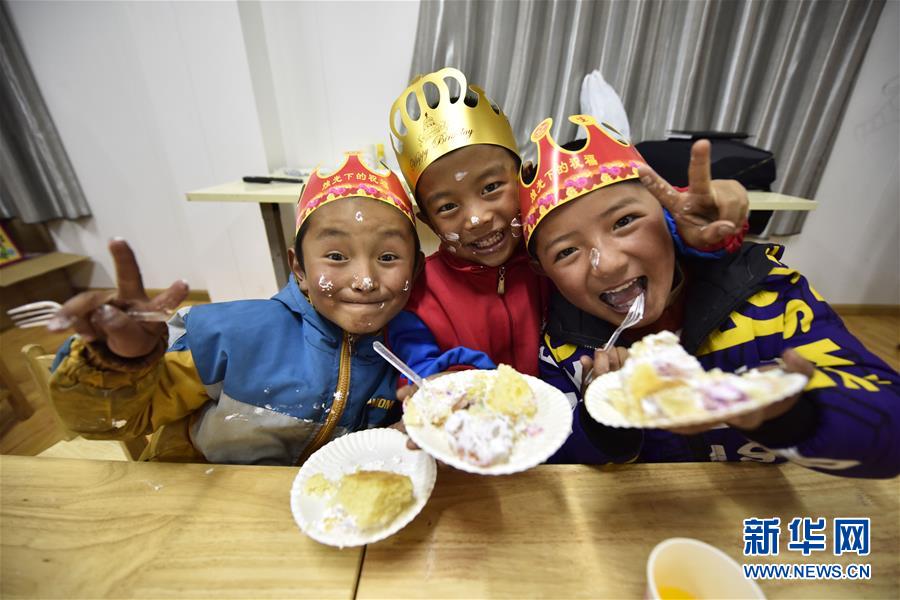 5月27日,玉麥鄉(xiāng)小學(xué)的孩子們在慶?!吧铡?。新華社記者王炳坤攝