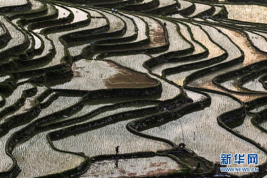 這是從江縣加榜鄉(xiāng)加車梯田風(fēng)光(5月27日攝)。夏日時節(jié),位于貴州省黔東南苗族侗族自治州從江縣加榜鄉(xiāng)加車、加頁、黨扭等苗寨的梯田在晨霧與陽光的映襯下線條分明,光影變幻,景色如畫。新華社記者 楊文斌 攝