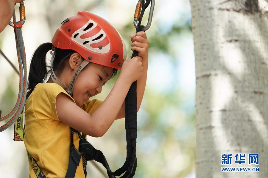 5月31日,小朋友在北京朝陽公園體驗(yàn)戶外運(yùn)動。