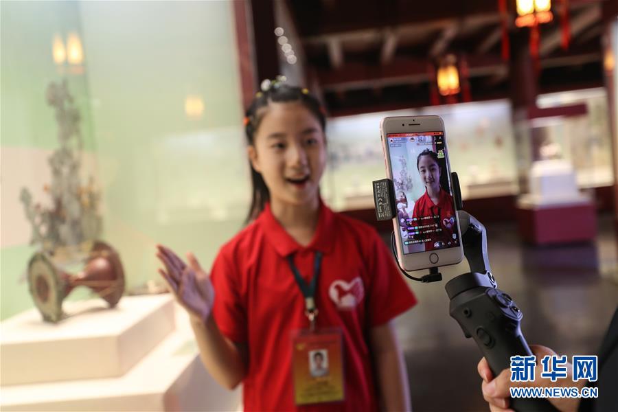 6月1日,小志愿者于冰清在沈陽故宮博物館內(nèi)通過直播向觀眾講解“古趣童心——清宮文物中的兒童世界”展覽。當(dāng)日是“六一”國際兒童節(jié),沈陽故宮博物館的小志愿者利用網(wǎng)絡(luò)直播的形式,帶領(lǐng)小朋友“云”逛沈陽故宮博物館,并向小朋友們詳細講解正在館內(nèi)展出的“古趣童心——清宮文物中的兒童世界”展覽。新華社記者潘昱龍攝。
