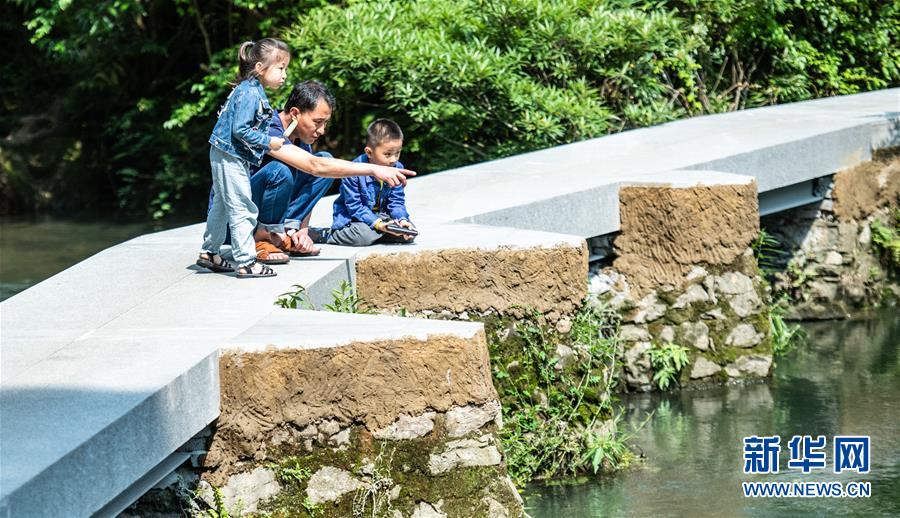 6月2日,家長帶著小朋友在貴陽市阿哈湖國家濕地公園內(nèi)游玩。初夏時節(jié),貴州省貴陽市阿哈湖國家濕地公園草木蒼翠,風(fēng)景如畫,吸引人們前來休閑游玩。新華社記者陶亮攝。