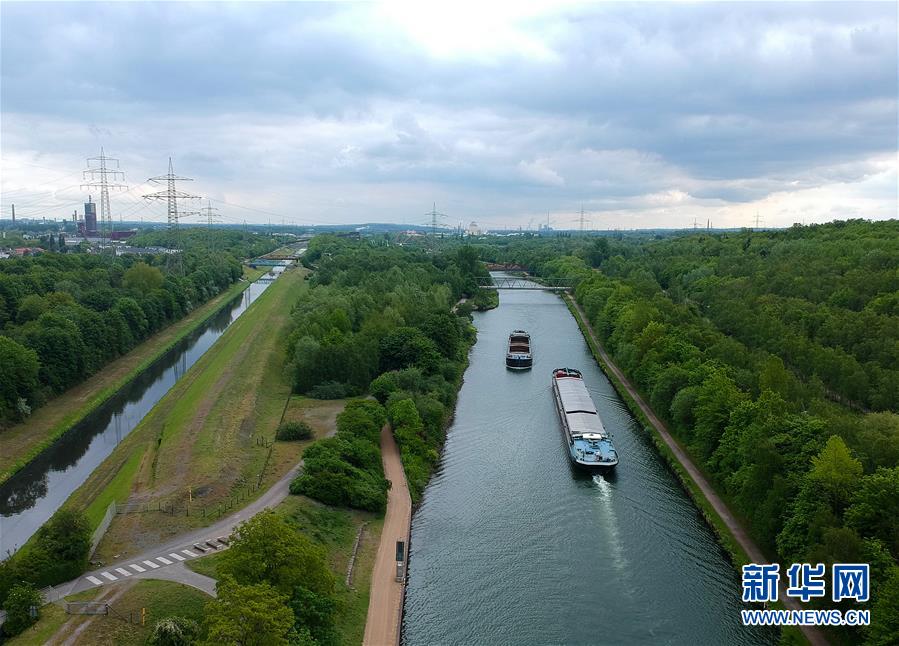 2019年5月10日,貨船航行在德國埃森埃姆舍河上。埃森位于德國傳統(tǒng)煤鐵工業(yè)區(qū)——魯爾區(qū)。魯爾區(qū)經(jīng)歷了產(chǎn)業(yè)轉(zhuǎn)型,已成為環(huán)境優(yōu)美、高科技聚集的創(chuàng)新經(jīng)濟區(qū)。6月5日是第47個聯(lián)合國世界環(huán)境日,今年的主題為“關(guān)愛自然刻不容緩”。新華社記者逯陽攝。