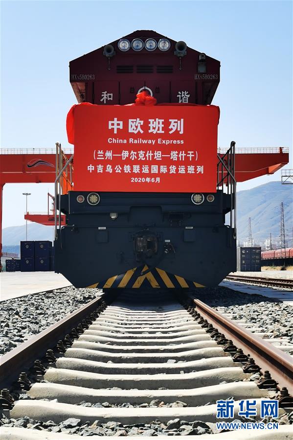 這是6月5日在甘肅蘭州國際陸港拍攝的準(zhǔn)備發(fā)車的“中吉烏”公鐵聯(lián)運(yùn)國際貨運(yùn)班列。新華社記者范培珅攝。
