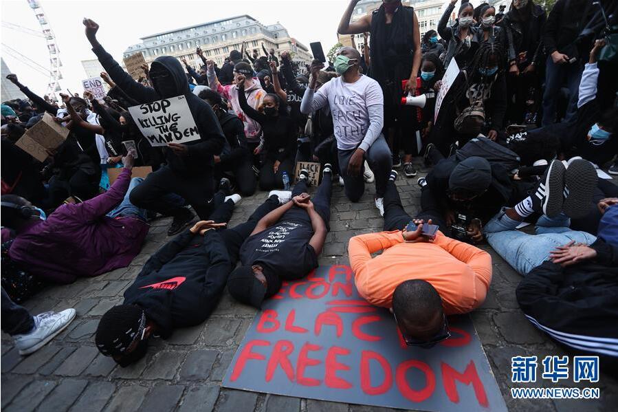 6月7日,民眾在比利時(shí)布魯塞爾市中心的司法宮附近參加示威活動(dòng)。比利時(shí)民眾當(dāng)日在布魯塞爾市中心的司法宮附近舉行示威活動(dòng),抗議美國明尼阿波利斯市警察暴力執(zhí)法致非裔男子喬治·弗洛伊德死亡。新華社記者鄭煥松攝