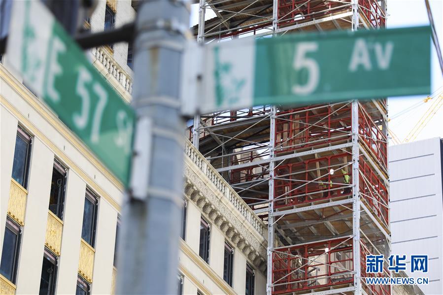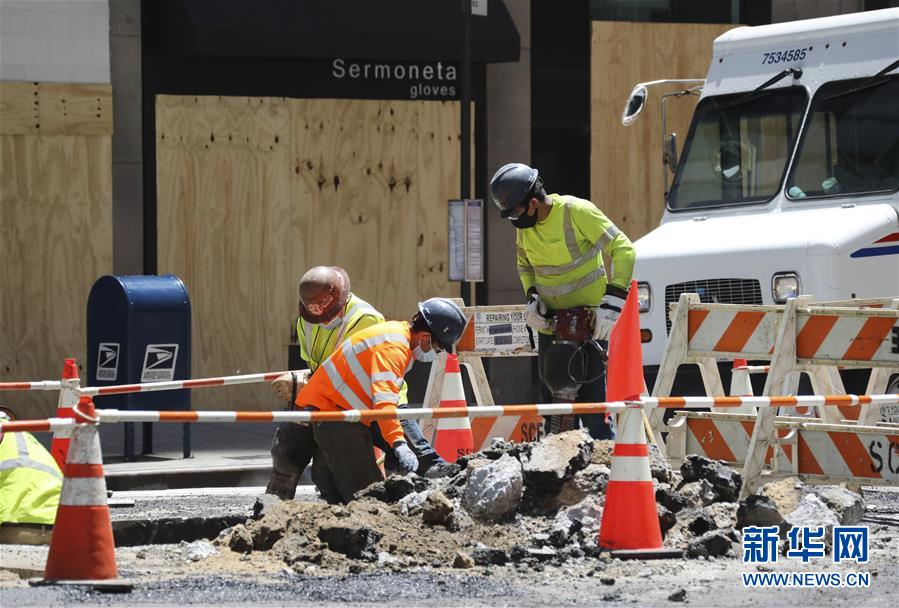 6月8日,工人在美國紐約的一處工地忙碌。在因新冠疫情進入“居家令”近三個月之后,美國紐約市于當地時間8日開始“解封”,進入經濟重啟的第一階段。新華社記者王迎攝