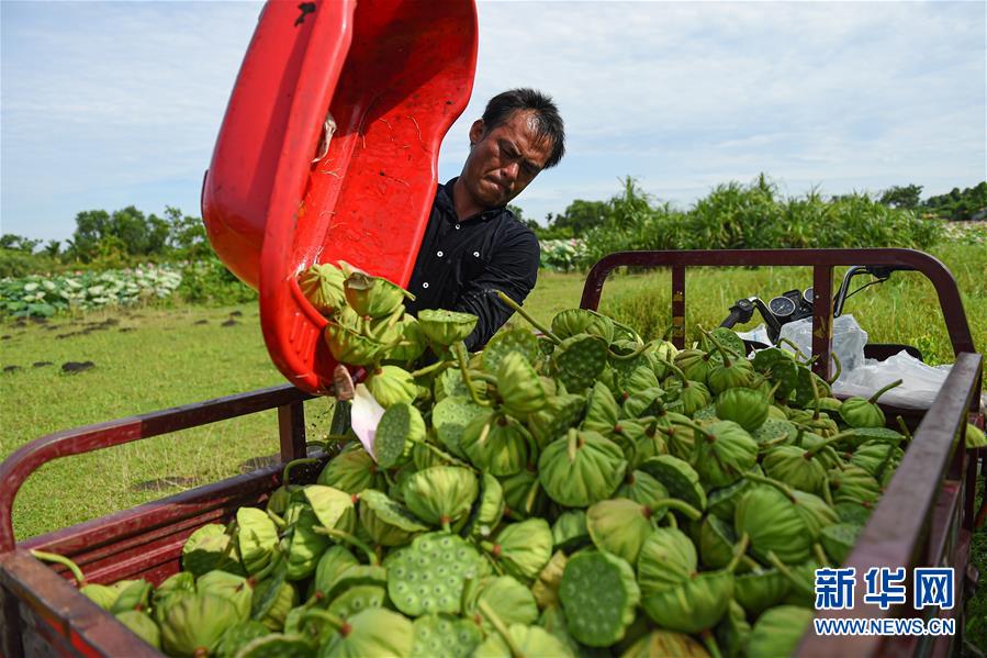 6月9日,村民在??邶埲A區(qū)龍泉鎮(zhèn)椰子頭村裝運(yùn)采摘的蓮蓬。初夏時節(jié),位于海南??邶埲A區(qū)龍泉鎮(zhèn)的蓮蓬逐漸成熟,當(dāng)?shù)卮迕窦泳o采摘,一派繁忙景象。新華社記者蒲曉旭攝