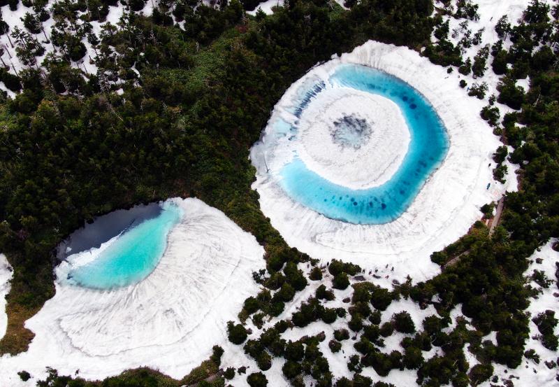 當(dāng)?shù)貢r間2020年6月8日,日本,在橫跨巖手縣與秋田縣的八幡平山頂附近的“鏡沼”,伴隨著“鏡沼”的積雪從外側(cè)逐漸融化,外圍的碧藍(lán)色湖水與中心部的潔白積雪相映成趣,呈現(xiàn)出獨特的類似“龍眼”的景象。據(jù)悉,八幡平“龍眼”奇景只在每年5月下旬至6月初的雪融期間短暫出現(xiàn)。