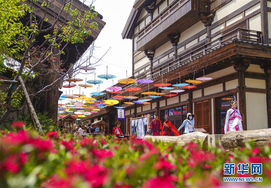 6月13日,在長(zhǎng)春市世茂蓮花山小鎮(zhèn)寬厚里商街,表演者身穿漢服、古裝進(jìn)行表演展示。當(dāng)日是“文化和自然遺產(chǎn)日”。吉林長(zhǎng)春首屆蓮花山消夏生活節(jié)在世茂蓮花山小鎮(zhèn)舉行?;顒?dòng)將非遺展示與假日消暑休閑相結(jié)合,讓游人在“古色古香”的油紙傘巷中品傳統(tǒng)文化魅力,享夏日休閑愜意。新華社記者許暢攝。