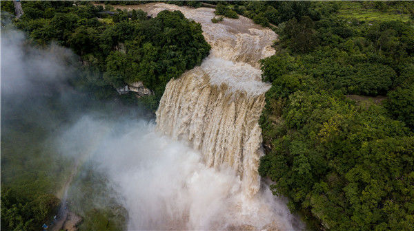 2019年6月12日,航拍貴州安順黃果樹大瀑布,直瀉山谷蔚為壯觀。