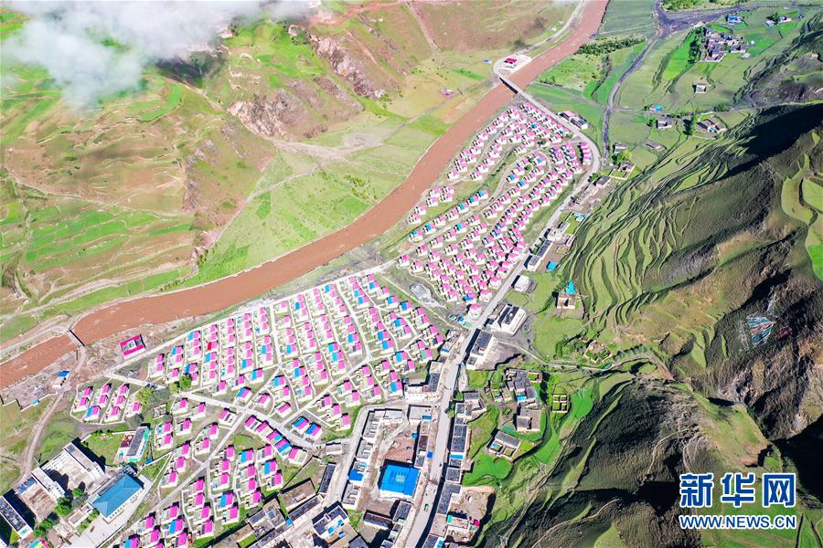 位于丁青縣嘎曲河畔的尺牘鎮(zhèn)易地扶貧搬遷點(diǎn)(6月14日攝,無(wú)人機(jī)照片)。新華社記者 田金文 攝