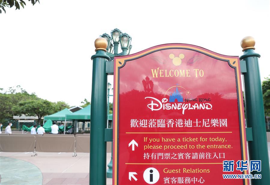 6月17日拍攝的香港迪士尼樂(lè)園指示牌。新華社記者 李鋼 攝