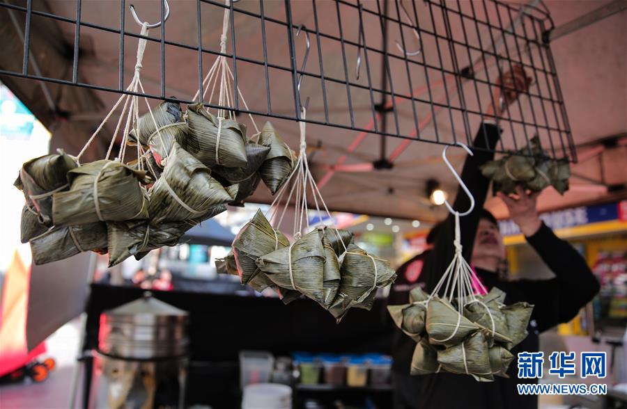 6月19日,華人攤主江阿姨在澳大利亞悉尼查茨伍德鎮(zhèn)準(zhǔn)備銷售粽子。新華社記者白雪飛攝