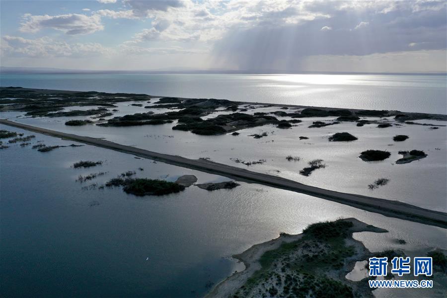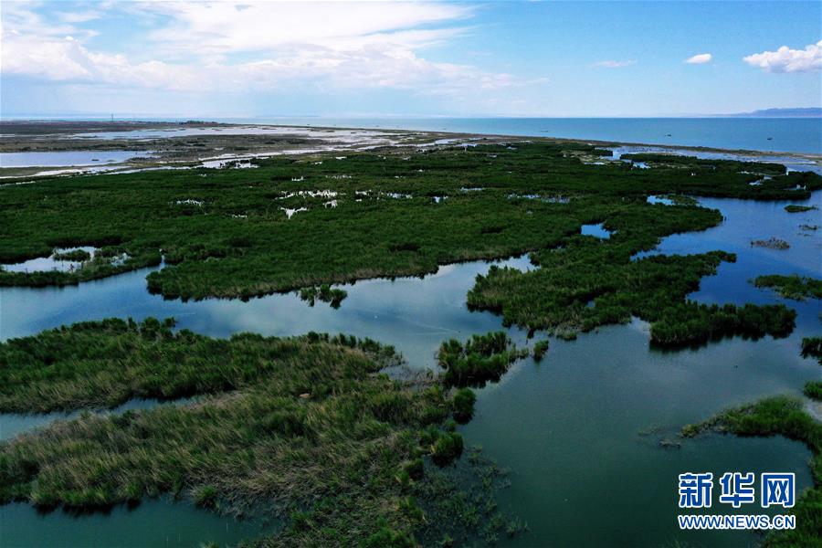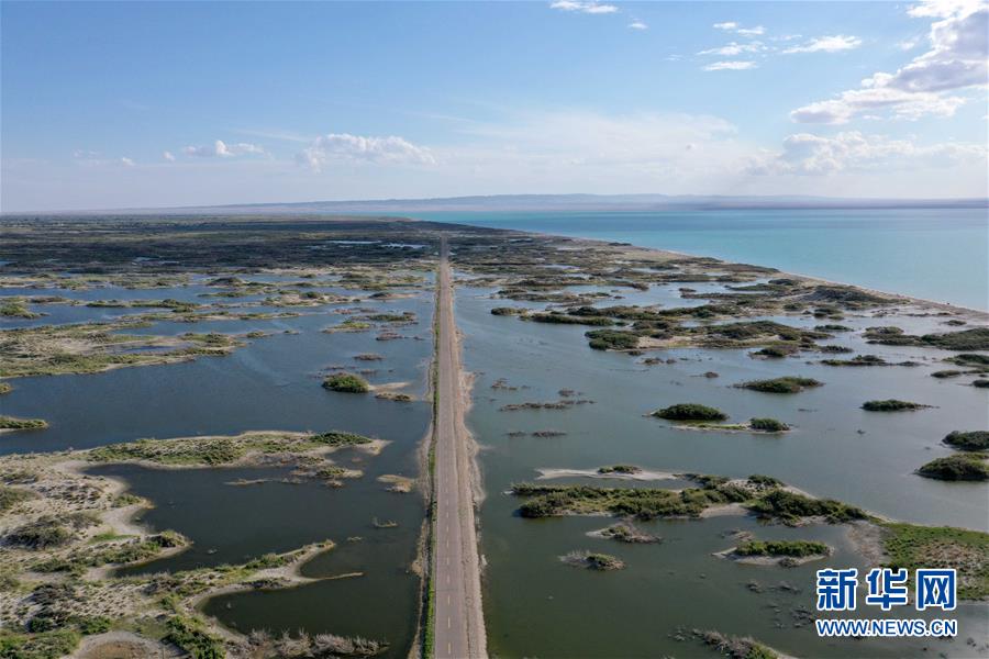 6月18日拍攝的新疆烏倫古湖國家濕地公園(無人機(jī)照片)。烏倫古湖國家濕地公園位于新疆阿勒泰地區(qū)福海縣城以西,由烏倫古湖和吉力湖兩部分組成。烏倫古湖濕地公園是遷徙候鳥飛越天山和阿爾泰山的“能量補(bǔ)充站”,良好的濕地生態(tài)吸引著大量遷徙鳥類在此集結(jié)成群,繁殖棲息,成為一道靚麗的風(fēng)景線。新華社記者 沙達(dá)提 攝