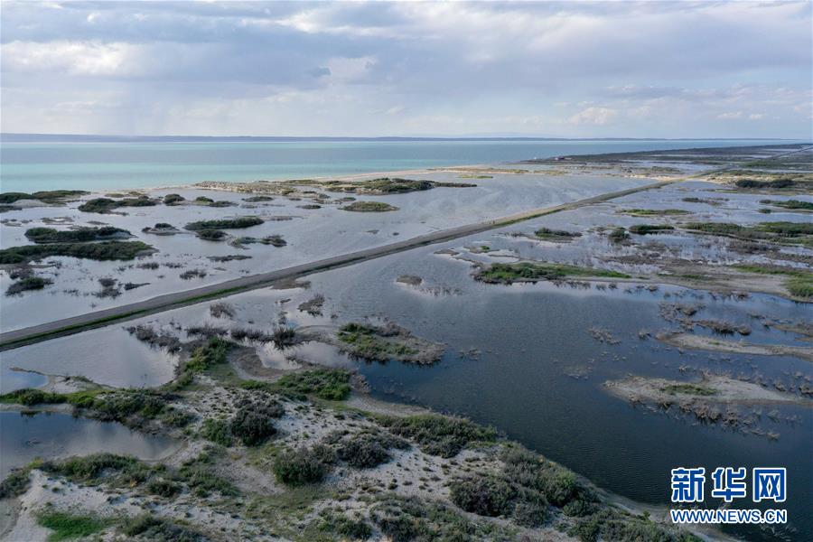 6月18日拍攝的新疆烏倫古湖國(guó)家濕地公園(無(wú)人機(jī)照片)。烏倫古湖國(guó)家濕地公園位于新疆阿勒泰地區(qū)福海縣城以西,由烏倫古湖和吉力湖兩部分組成。烏倫古湖濕地公園是遷徙候鳥(niǎo)飛越天山和阿爾泰山的“能量補(bǔ)充站”,良好的濕地生態(tài)吸引著大量遷徙鳥(niǎo)類(lèi)在此集結(jié)成群,繁殖棲息,成為一道靚麗的風(fēng)景線(xiàn)。新華社記者 沙達(dá)提 攝
