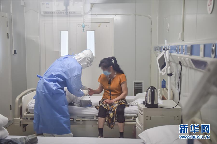 6月19日,在北京地壇醫(yī)院隔離病房內(nèi),護士給新入住的病人做檢查。新華社記者彭子洋攝